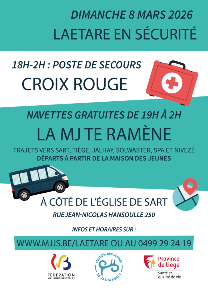 Les départs se feront à la MJ (rue Jean-Nicolas Hansoulle 250 – à côté de l’église). Ce service est bien entendu gratuit !